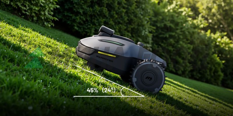 Робота за косене се справя с наклони до 45%, което означава, че е подходящ за 90% от стандартните дворове.